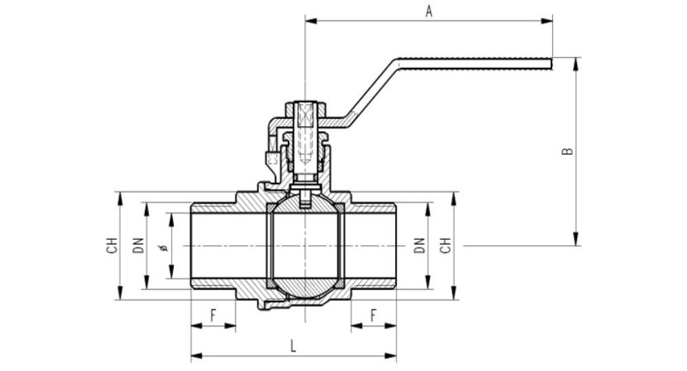 M.M. full bore industrial ball valve with blue lever handle for compressed air